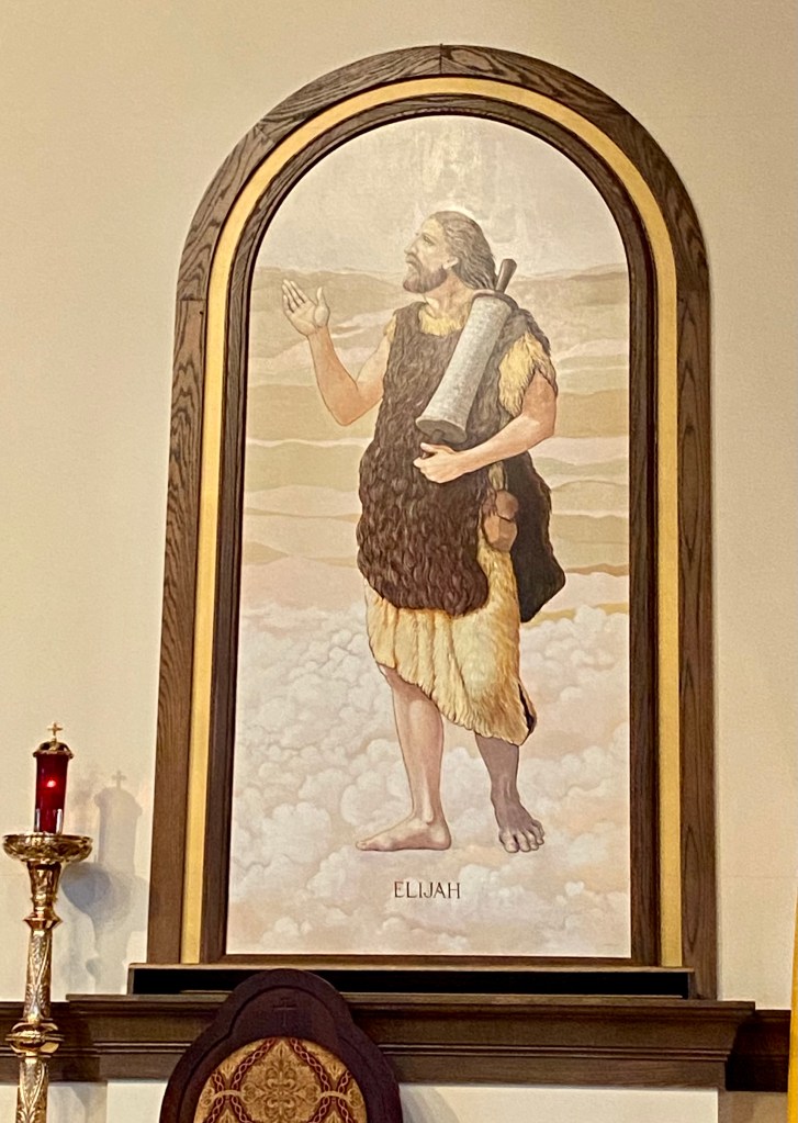 For the past two Sessions we have been focusing on the Ten Commandments. This session we will look at the remaining 7 Commandments, four through ten. When teaching the Commandments we will often see them divided up into two groups. At Holy Trinity we have a large painting of the prophets Moses and Elijah on the wall behind the altar. For last session we took a picture of Moses to highlight an interesting detail the tablets in Moses’ hands. In his right hand is the tablet listing numbers 1, 2, and 3. In his left hand the tablet lists numbers 4, 5, 6, 7, 8, 9, and 10. This division in the Commandments is with intent. Commandments one through three teach us how to love God. Commandments four through ten teach us how to love people. For this session we are using the painting of Elijah to address the basic question children ask about what they see in church. If you had pointed out Moses last week then they certainly noticed the second painting. We see these men for what they have come to be known as representing two of the major divisions of the Old Testament: Moses represented the law and Elijah represented the prophets. One astounding thing that both Elijah and Moses share in common is that both of them had very intimate encounters with God where he revealed his glory to them, but neither saw his face.