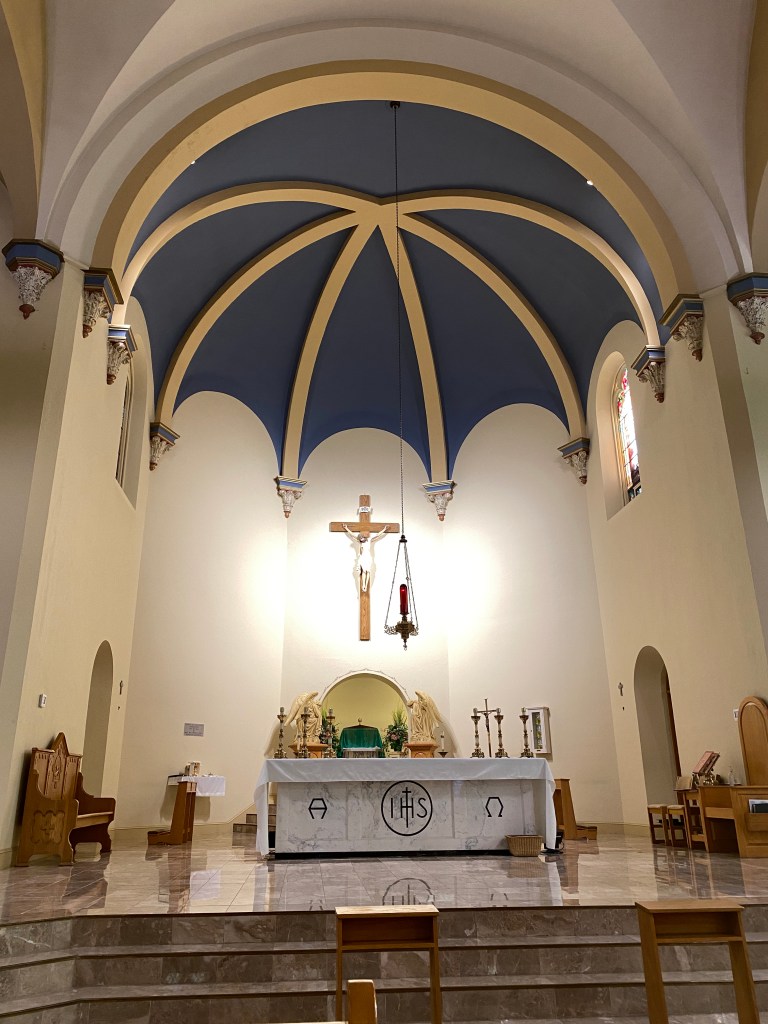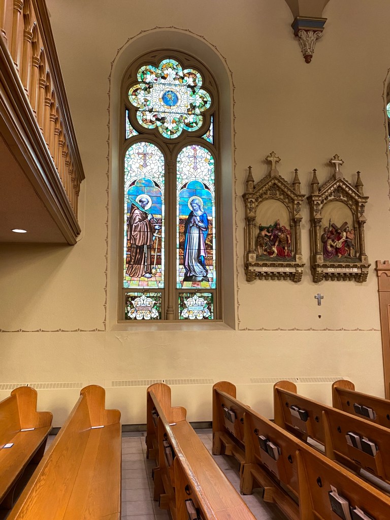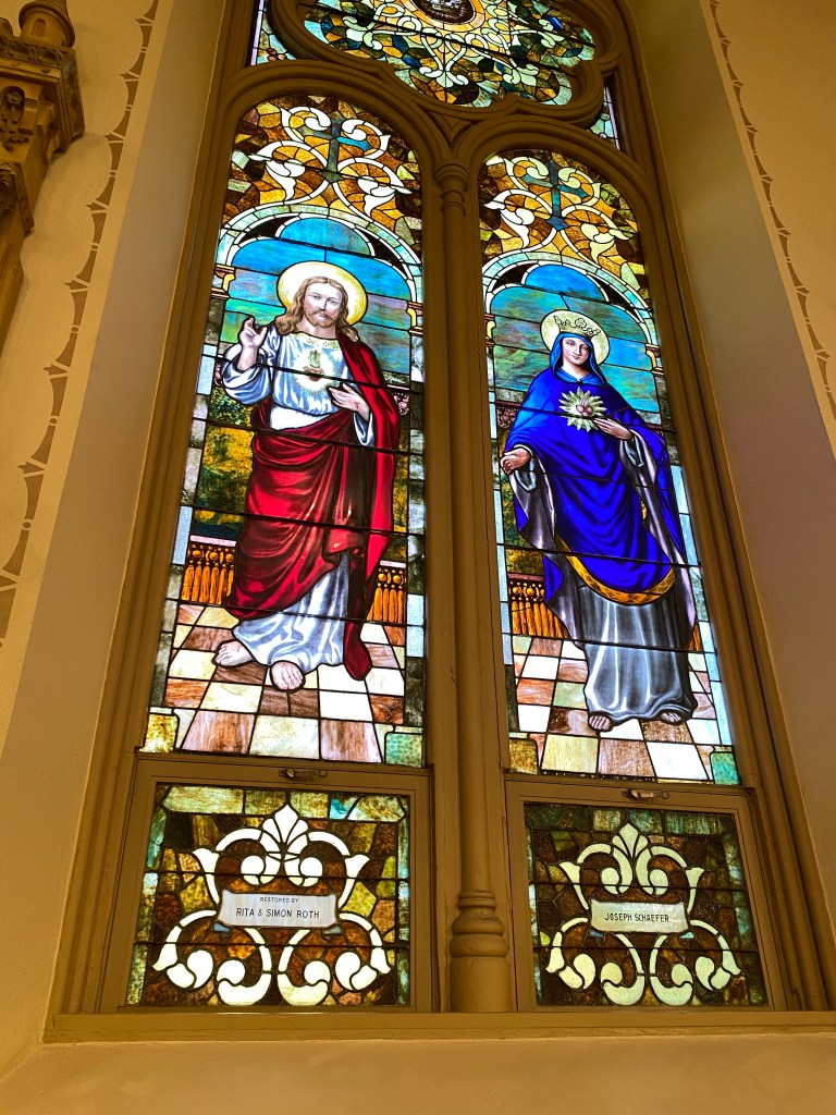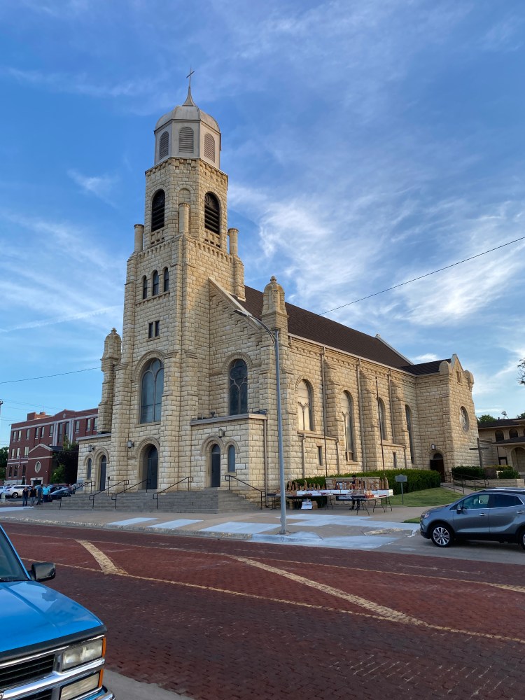 On Saturday night after a long and treacherous drive through some very terrible storms we found ourselves not far from the previous church in Colby, KS. Both in the same diocese yet vastly different in their community. We attended the 7:30am Mass at St. Joseph Catholic Church, in Hays, Kansas on August 13, 2023. This parish has a fascinating history. It began in 1878 when the growing German-Russian Catholic population required its own parish. The heritage of the German Catholics in this area of Kansas consists of immigrants originating from Volga and Bukovina. Still a robust and active community this parish was full on Sunday morning. The beautiful old limestone church is situated on a corner with several other buildings of similar make on a campus setting. From the street view you can see that a friary was an anchor for this parish. I learned that this parish was under spiritual leadership of Capuchin Franciscan Friars for 135 years being turned over in 2013 to the Diocese of Salina, KS. A remarkable church its beauty is well worth mentioning. The stained glass windows are breathtaking. Such beautiful workmanship they were a pleasure to see. A spacious choir loft with a sizable organ made for an amazing listening experience. Prayers for rain and for the local farmers were part of the closing prayers. (See more on St. Isidore from our post about Sacred Heart in Colby, KS) Visiting a parish with a treasure of a church is one of the best surprises for visitors. We would have liked to spend more time exploring this church as it clearly has quite the history of faithful Catholics, however our journey East beckoned us away.
