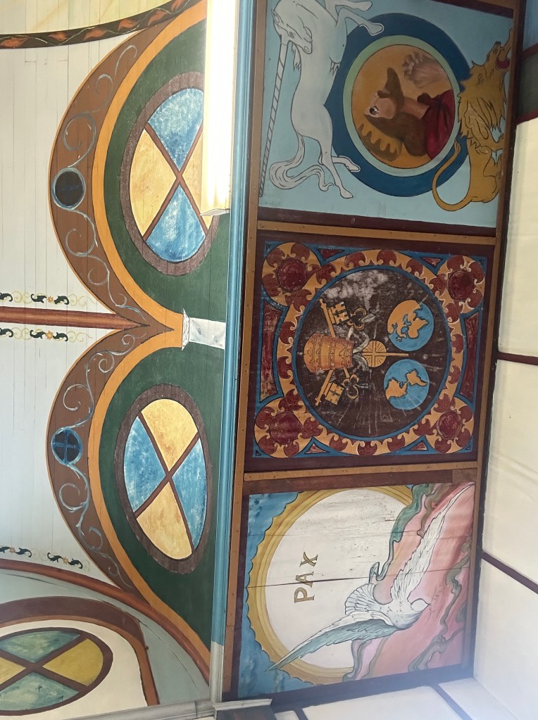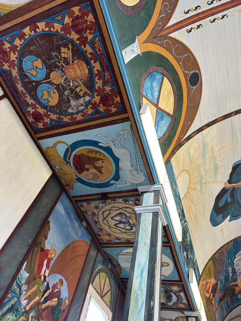 This delightful photographer Susan Tregoning shares on her website two other well known painted churches on the Big Island. She has taken beautiful pictures of the artwork painted all over the walls in these churches.