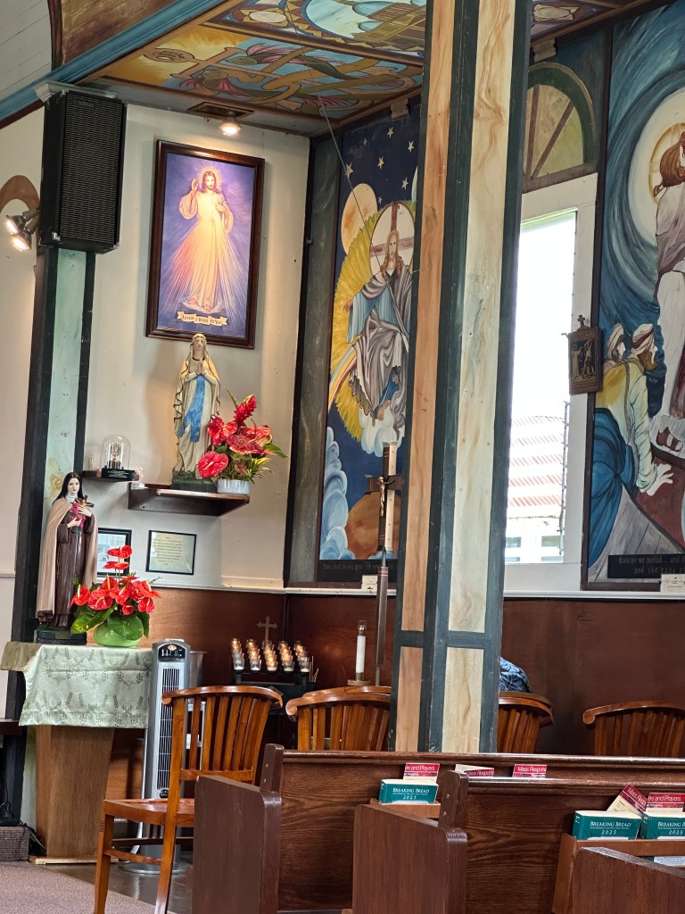 Imagine sitting in mass as the ocean air fills the church as you are greeted with colorful, beautiful artwork surrounding you. This is what it was like stepping into St. Theresa Catholic Church and Holy Rosary Mission Church. The warmth and comfort of this parish was so felt. You ARE welcome was immediately felt. What a great blessing this parish has to be felt this profoundly to strangers.